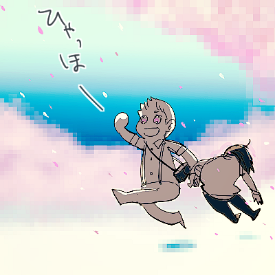 持ち上げられて喜ぶ鳥口君と